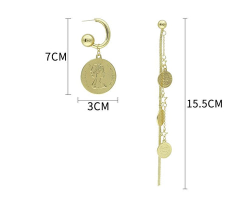 Asymmetrical earrings female disc baroque retro style simple earrings
